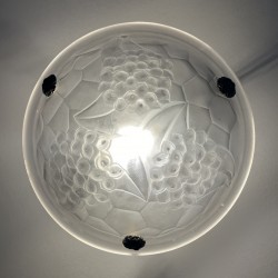 Description : Superbe vasque ancienne de style et d'époque Art Déco. Signature DEGUE à l acide. Le montage est plus tardif (aucune des cordes d'origines ne sont parvenus en bon état jusqu'a nous). Dimensions : Diamètre : 40 cms Hauteur chaines incluses : 1 douille E27 Etat : Très bon état d’usage. La cordeliere est plus récente.