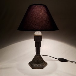Superbe paire de lampes de chevet anciennes en laiton massif avec base lestée en fonte. Abat jour neuf motif "jungle". Belle patine d'usage avec quelques traces de chocs.
