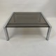 Description : Table basse vintage de forme carré constituée d’un corp en acier et d’un plateau en verre fumé.