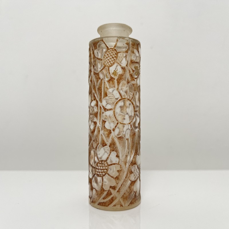 Description : Flacon de parfum « Chypre » réalisé en verre dépoli à patine sépia par René Lalique en 1924