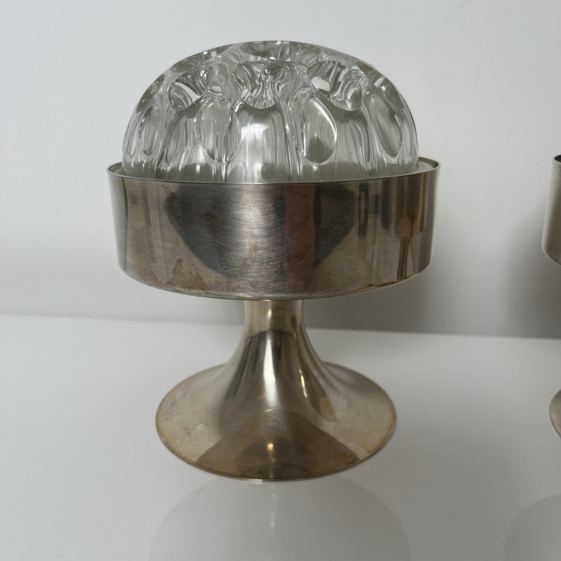Paire de pique fleur vintage pied tulipe en métal argenté déco space age