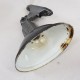 Rare applique industrielle constituée d’un bras en aluminium et d’un abat jour en tole émaillé. Hauteur 41 cms Largeur 23 cms Profondeur 32 cms Douille E27 Etat d’usage. Patine inimitable. Trace de choc et de corrosion sur l’abat jour. Bras finition graphite